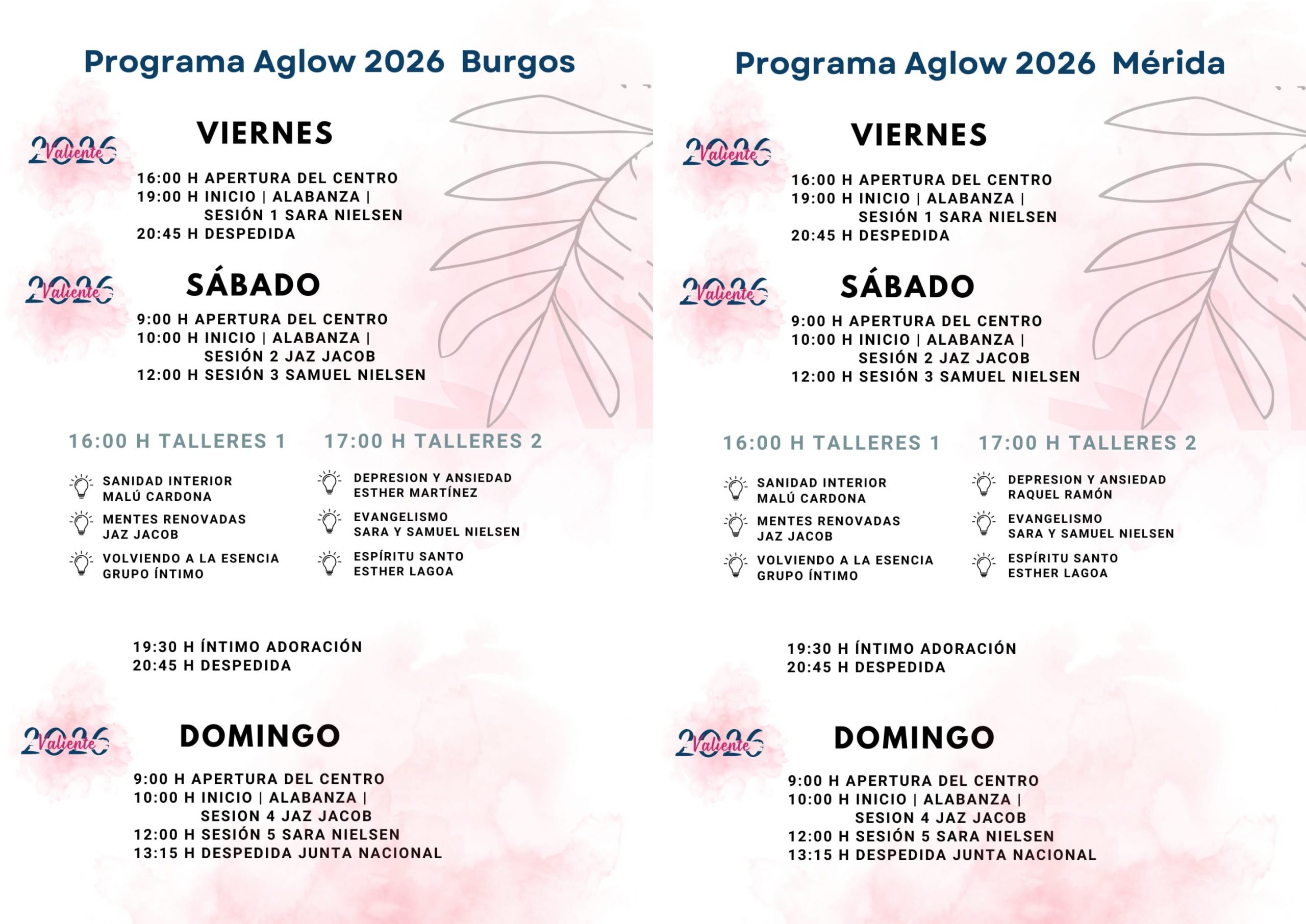 Aglow no es un evento ni un congreso, ¡es mucho más! Es un encuentro donde nos unimos mujeres de toda España porque tenemos motivos para Conectar, Celebrar y Compartir.